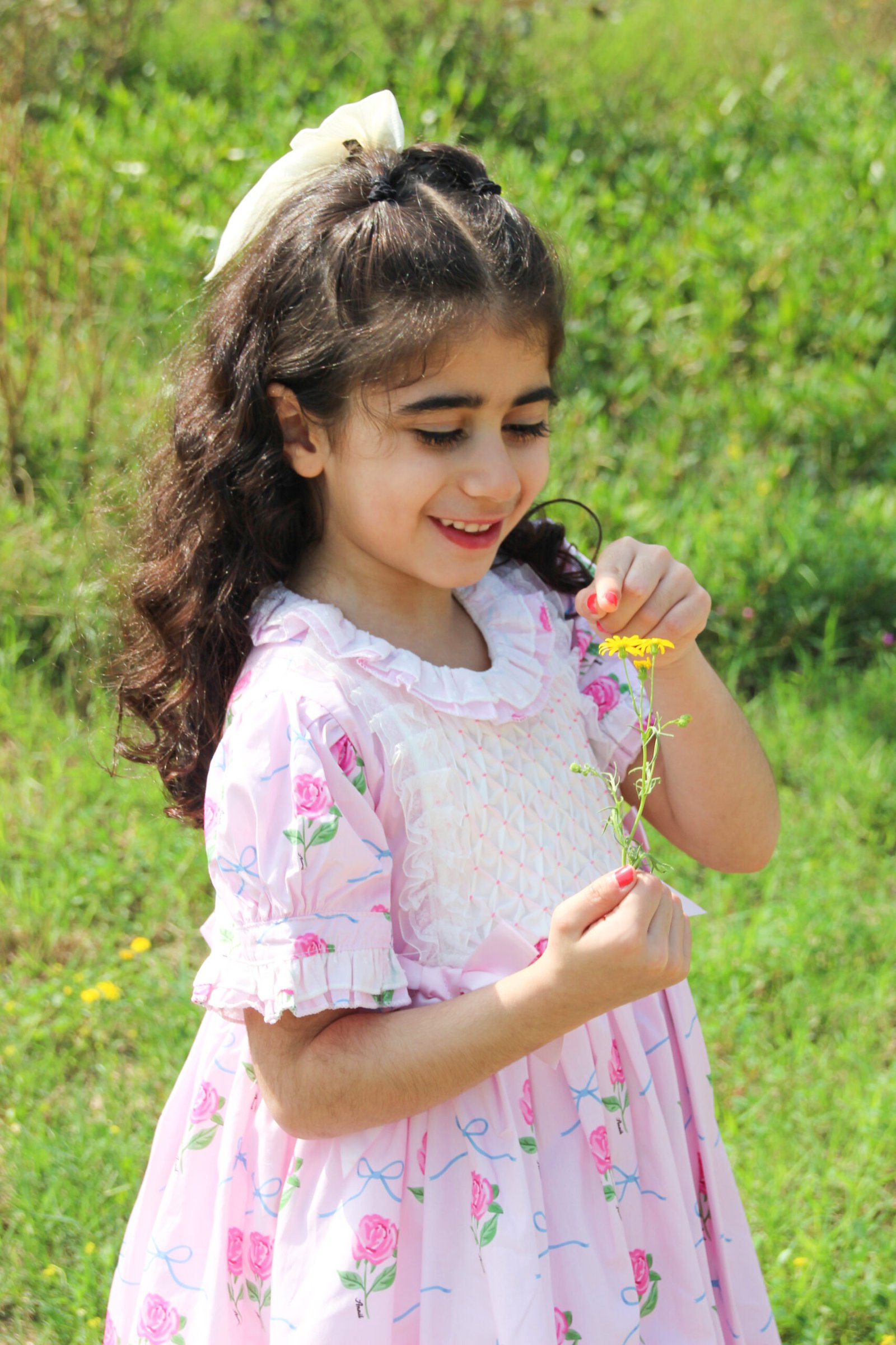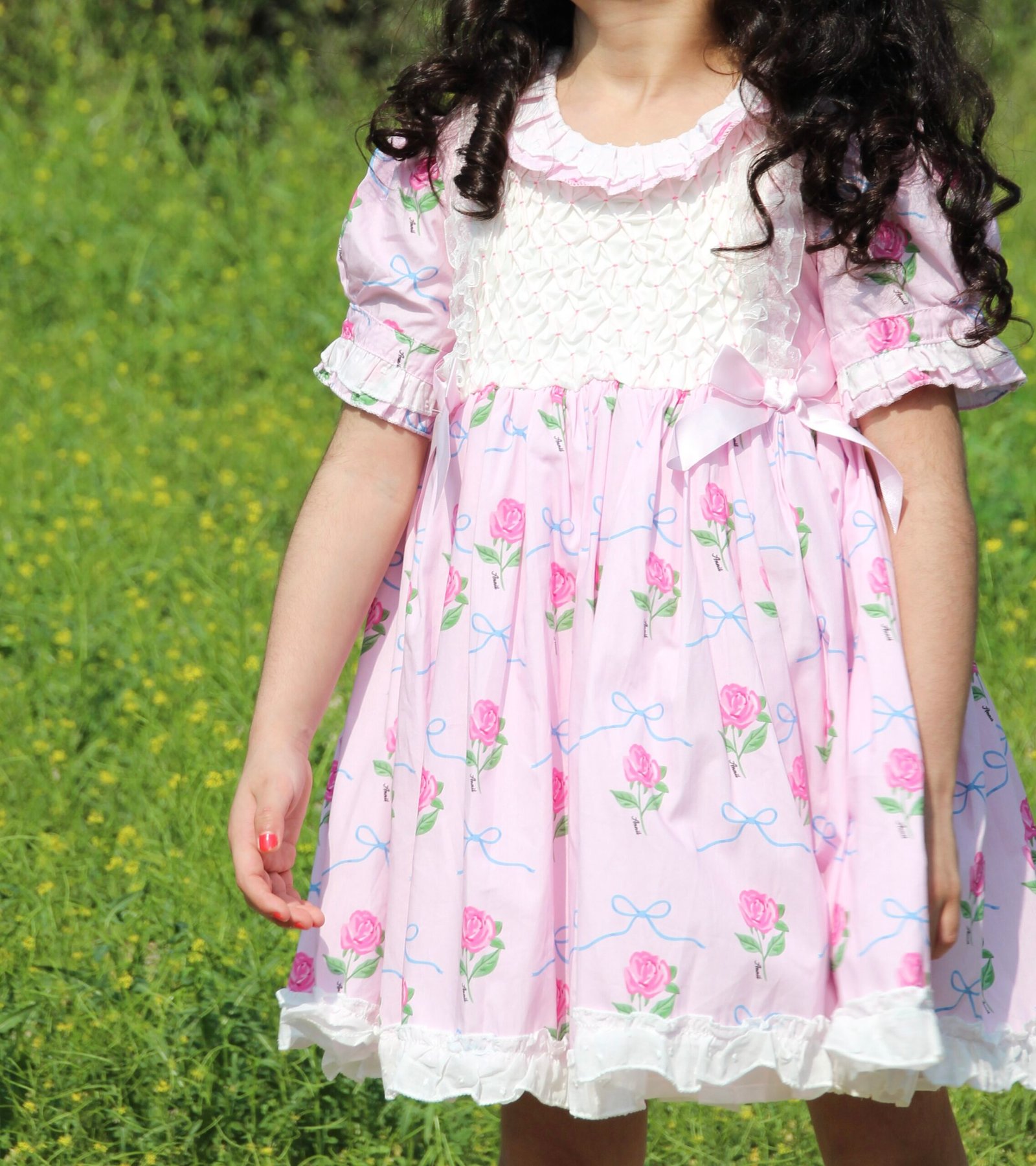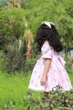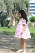 Pink floral dress with a puff sleeves